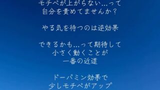今日の前向きになれるポジ言葉🍀やる気はあとからついてくるモチベが上がらない…って自分を責めてませんか?やる気を待つのは逆効果できるかも…って期待して小さく動くことが一番の近道ドーパミン効果で少しモチベがアップそのままやるとスイッチが入ります...