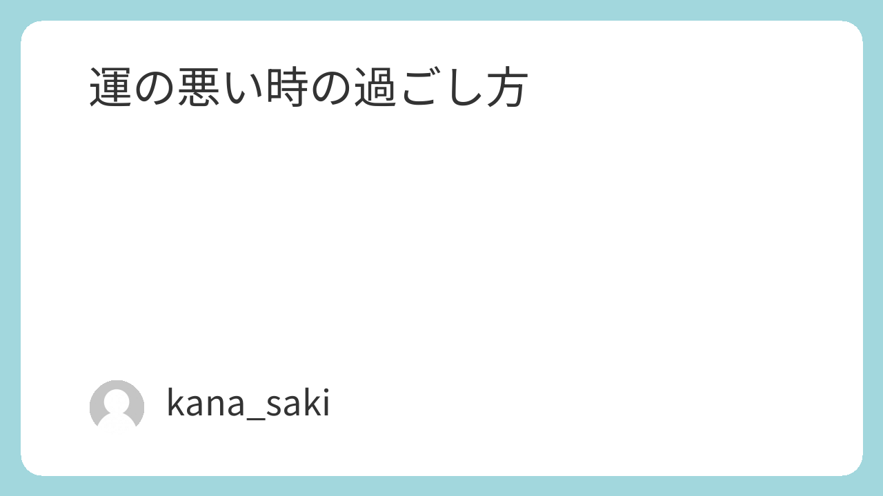 運の悪い時の過ごし方
